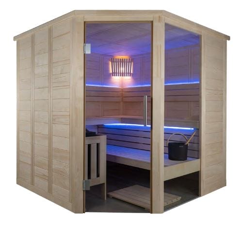 The Sentiotec™ Alaska Corner Indoor sauna is designed to seat 3-4 people, depending on how you decide to sit. You have the option to relax while lying down due to the length of the bench seats and support your neck and head with its portable headrest. When inside, you have the choice of sitting at different heights in the sauna. The higher you sit, the hotter your experience will be.
