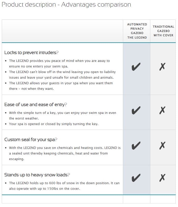 • The LEGEND allows your guests in your spa when you want them there – not when they want.