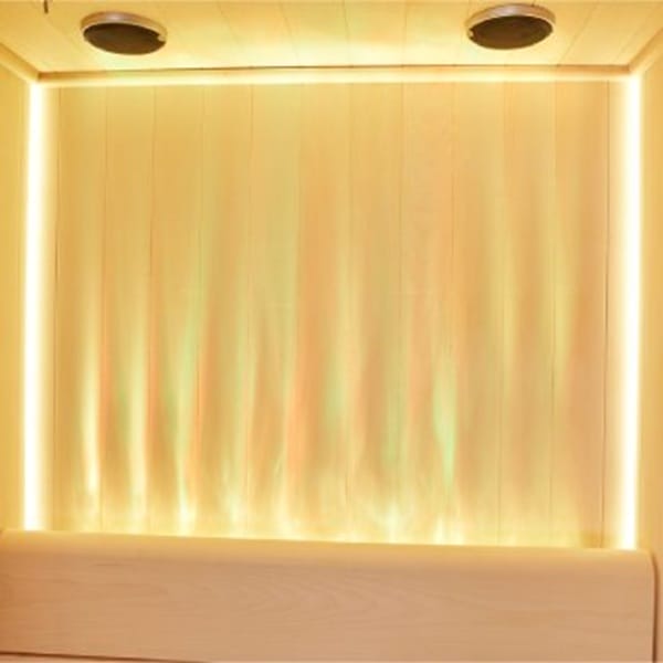 Featuring the mesmerising Aurora Motion Lighting System™, the ThermoVibes Aurora sauna offers a truly immersive gateway to nurture both body and mind. Both models in the Aurora range offer compact footprints that belie their spacious interiors, making Aurora saunas perfect for the space-conscious. Traditional stove heating is met with modern technology, including a Bluetooth sound system, intelligent controls, Wi-Fi, and customisable animated lighting with the Aurora Motion Lighting System™. ThermoVibes Aurora, where timeless sauna therapy and advanced chromotherapy meet to create a multi-sensory environment to soothe the body and mind.