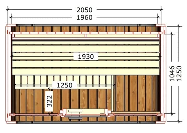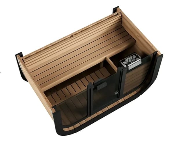 ■ 2 Stainless Steel Bands ■ Door Safety Glass ■ 8mm Toughened Glass ■ 1 x 450mm Bench ■ Outdoor: Roof Shingles ■ Harvia™ Stove & Stones |