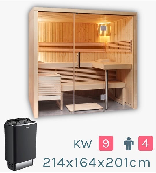 ■ Canadian Hemlock ■ 8kW Harvia Stove & Stones ■ Digital Controls ■ 1,450W: Far-Infrared Panels ■ Kit Form Assembly ■ LED Colour Light & Remote ■ I.R. Range: 49°C-65°C ■ Stove Range 65°C-90°C |