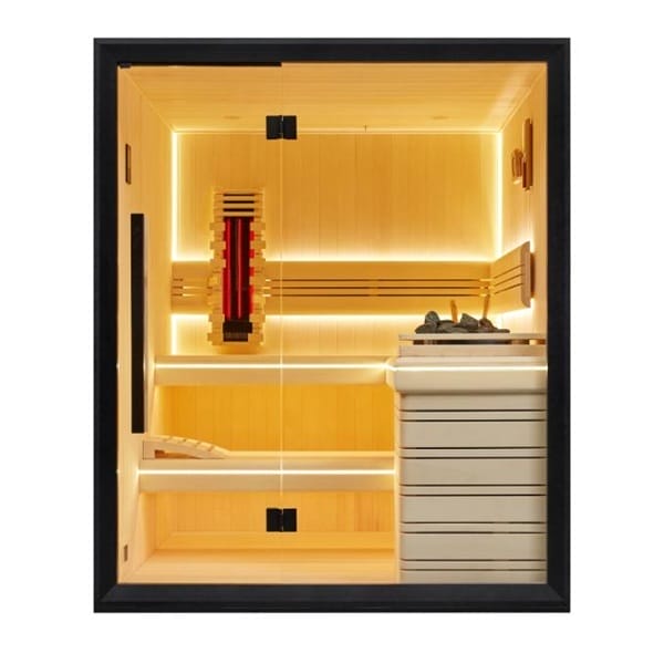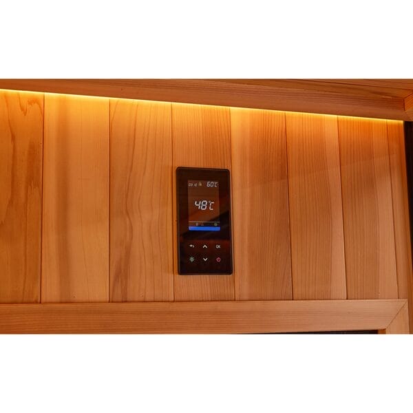 ■ Canadian Hemlock ■ 8kW Harvia Stove & Stones ■ Digital Controls ■ 1,450W: Far-Infrared Panels ■ Kit Form Assembly ■ LED Colour Light & Remote ■ I.R. Range: 49°C-65°C ■ Stove Range 65°C-90°C |