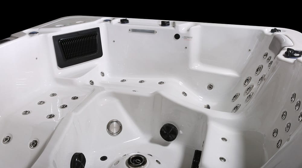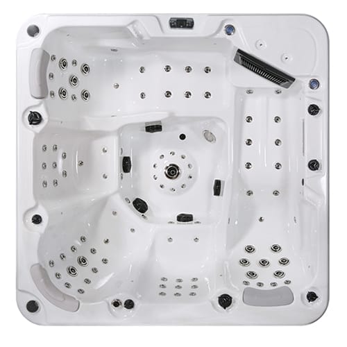 Jet Pump Hydro-Massage:The Hydro-Sport model has two 3 hp pumps and an air blower for bubble therapy. The two diverter handle features on the Hydro-Sport model allow you to increase or reduce the power of your chosen seat or lounger. As your needs change personalise the power of your massage so it is right every time. The adjustable Jets have directional nozzles so you can target specific area’s allowing for a more precise massage. With 5 different styles of massage jets, there is plenty of variety to experience as you move around the hot tub. Every seat delivers a different type of massage sensation. |