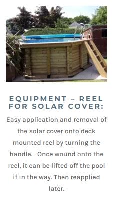 Easy application and removal of the solar cover onto deck mounted reel by turning the handle. Once wound onto the reel, it can be lifted off the pool if in the way. Then reapplied later.